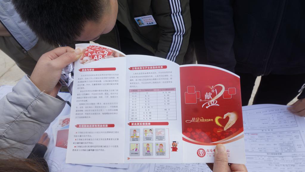 由于各院系根据学院该活动方案事先进行了广泛宣传,比如:播放无偿献血宣传片、无偿献血知识竞答活动、献血科普知识讲座、主题班会和黑板报等,让同学们了解了献血的意义,很多同学互相转告,表达着献血的意愿,并在第一时间赶到现场,认真的询问献血事宜。在医务人员的引导下,按序进行登记、填表、量血压、测血型等,顺利通过之后进行采血。