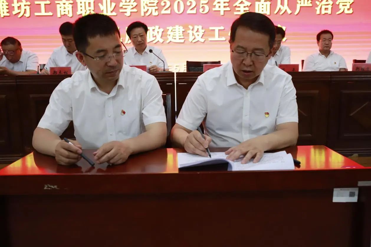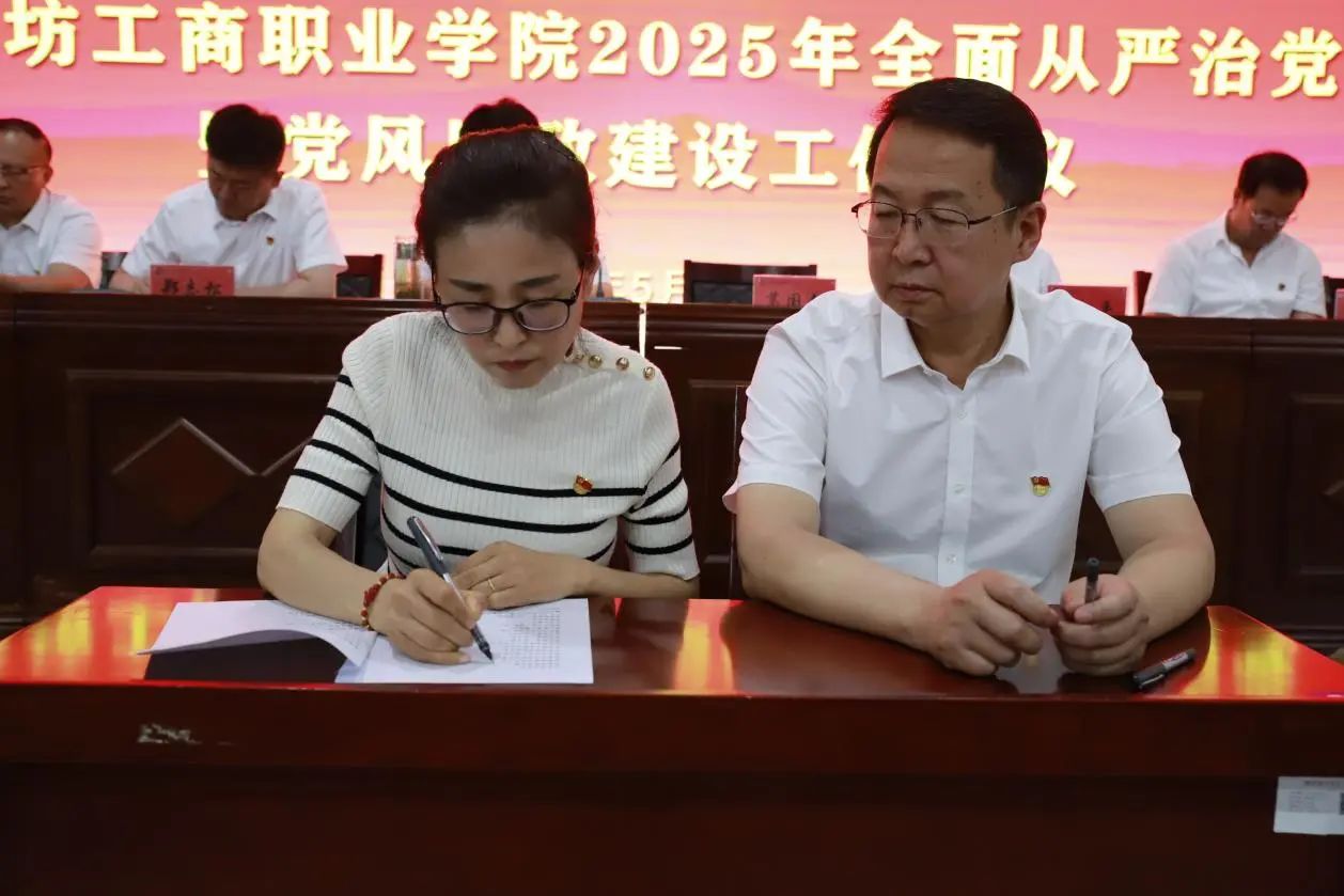 会议期间,举行了党风廉政建设责任书签订仪式,党委书记葛国文与各党支部书记及处室单位负责人现场签订责任书,进一步压紧压实全面从严治党主体责任和监督责任,督促各级干部知责明责、履责尽责。