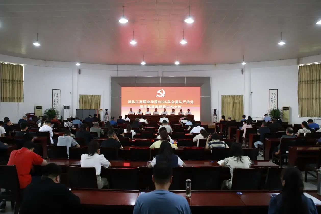 5月29日,潍坊工商职业学院召开2025年全面从严治党暨党风廉政建设工作会议。校长张绍秋,党委书记葛国文,党委常务副书记、执行校长、纪委书记郑志松等校领导及全体中层干部、专职辅导员和后勤集团中层及以上干部参会。