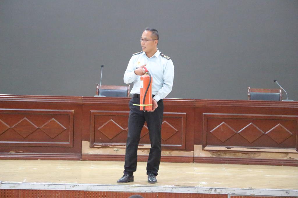 陈晓教官分别从交通安全、地震逃生、消防安全以及水灾煤气等四个角度详细讲解了,在上述灾难中的应急逃生方法,现场演示了消防灭火器械的正确使用方法,安全逃生通道的设置以及组织校园安全逃生演练的注意事项。本次报告会内容贴近实战,不走形式,又一次为我们敲响了校园安全的警钟,使全体人员受益匪浅。