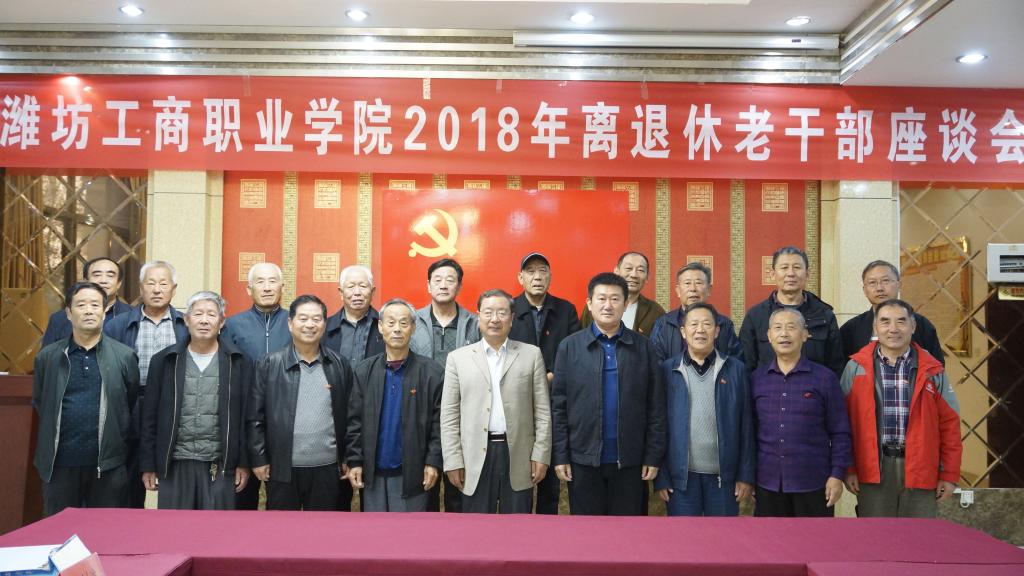 10月26日下午,适逢山东省第14个敬老月期间,潍坊工商职业学院2018年离退休老干部座谈会在交流中心219会议室顺利举行。学院王传旭院长、党委郑志松书记等相关领导和学院工会人员与15名离退休老干部欢聚一堂,畅谈我院发展成果,谋划学院发展大计。会议由党委书记郑志松主持。