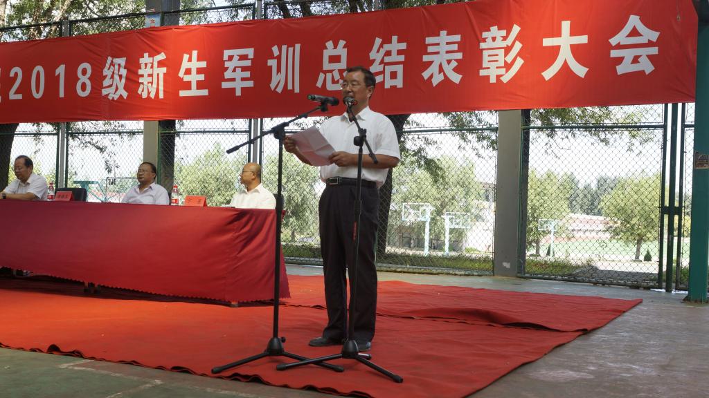 会操结束后,王院长发表讲话,首先对全体承担本次训练任务的教官们表示感谢,向圆满完成军训任务的同学们表示感谢,向本次军训中评选出的先进班级和先进个人表示祝贺。也对新生们提出了三点要求:一是保持军人作风,二是发扬优良传统,三是珍惜本次军训经历。王院长叮嘱同学们要以军训为契机在今后的学习保持良好的生活习惯,树立集体观念,共建和谐美丽校园和融洽互助的人际关系,希望同学们在日后的学习中取得更好的成绩。