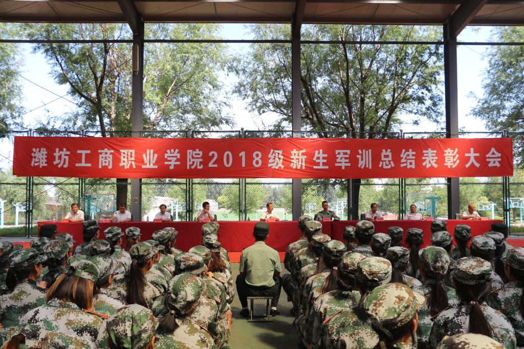9月7日,潍坊工商职业学院2018级军训总结表彰大会在学院风雨球场顺利召开 ,大会现场选拨出26个优秀集体,对军训期间表现突出的400余人进行了表彰。院长王传旭、党委书记郑志松等学院领导出席会议,18级全体新生、辅导员和教官共3000余人参加此次军训汇报演出。大会由党委副书记、副院长刘国庆主持。