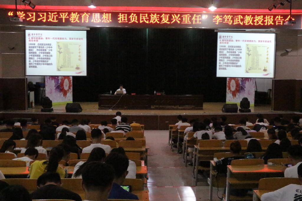 为深入学习宣传贯彻习近平总书记在北京大学师生座谈会和纪念马克思诞辰200周年大会上重要讲话精神,根据国家教育部、山东省委教育工委的部署安排,6月15日下午,潍坊工商职业学院“学习新思想千万师生,同上一堂课活动”主题报告会,在龙城大讲堂隆重举行,特邀山东高校习近平总书记重要讲话精神讲师团成员、潍坊医学院马克思主义学院院长李笃武教授作主题报告。学生处团委主要人员和院系公共思想政治课部分老师,各二级学院党支部书记、团总支书记、辅导员及学生代表1000余人参加报告会。报告会由潍坊工商职业学院党委副书记、副院长刘国庆主持。