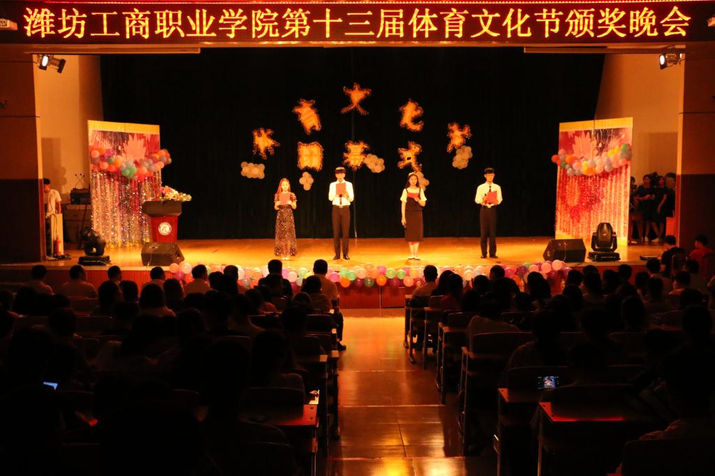 6月13日晚,潍坊工商职业学院第十三届体育文化节闭幕式暨总结表彰晚会在学院第一报告厅隆重举行。学院院长王传旭,党委书记郑志松等学院领导,学生处、团委,各院系部主要负责人和学生代表800余人参加晚会。