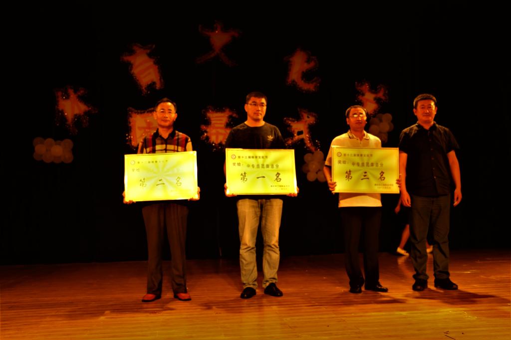 王传旭院长、郑志松书记分别为体育文化节表现突出的优秀院系和优秀个人颁发奖状,随后师生一同观看了精彩的节目表演。从活力四射的民族舞、追求梦想的歌曲串烧,到英姿飒爽的社团弹唱表演、节奏快速有力的现代舞,充分的展现了当代大学生青春活力和激情。晚会在一曲 《旗开得胜》 中圆满落幕。