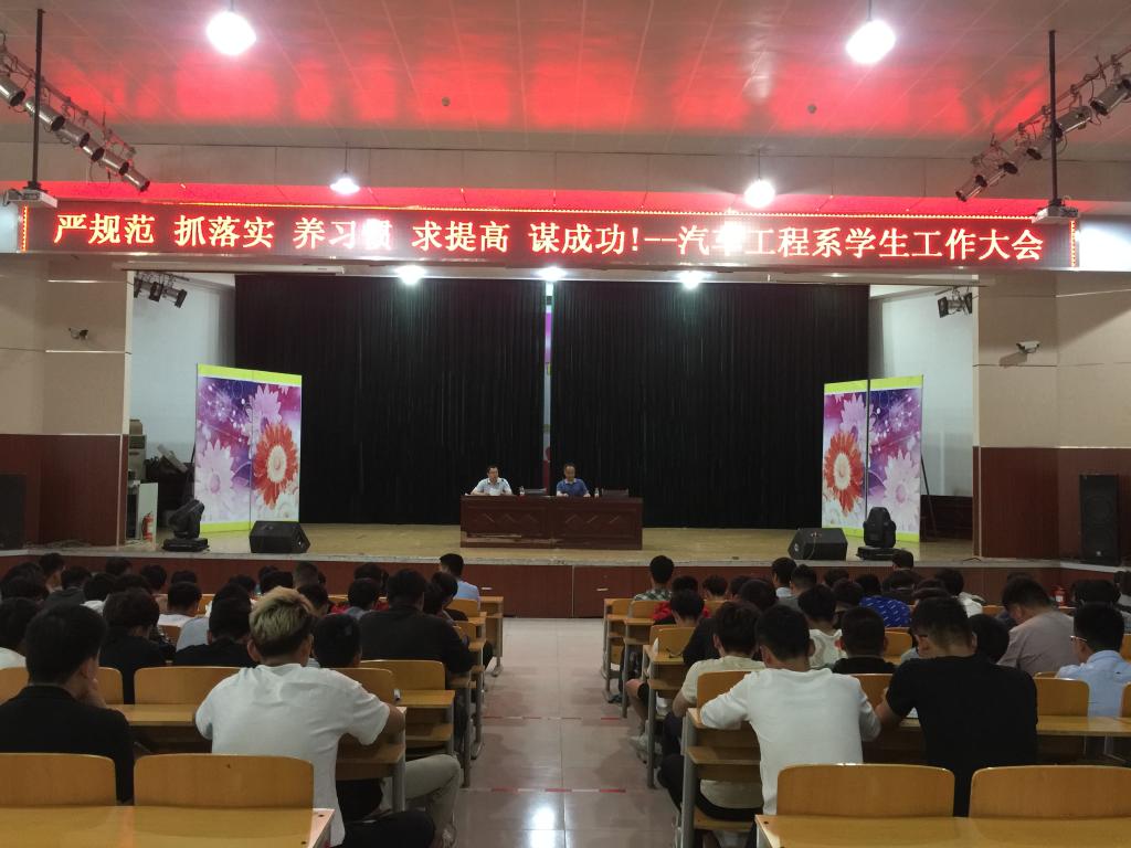 汽车工程系召开“严规范 抓落实 养习惯 求提高 谋成功”学生工作大会