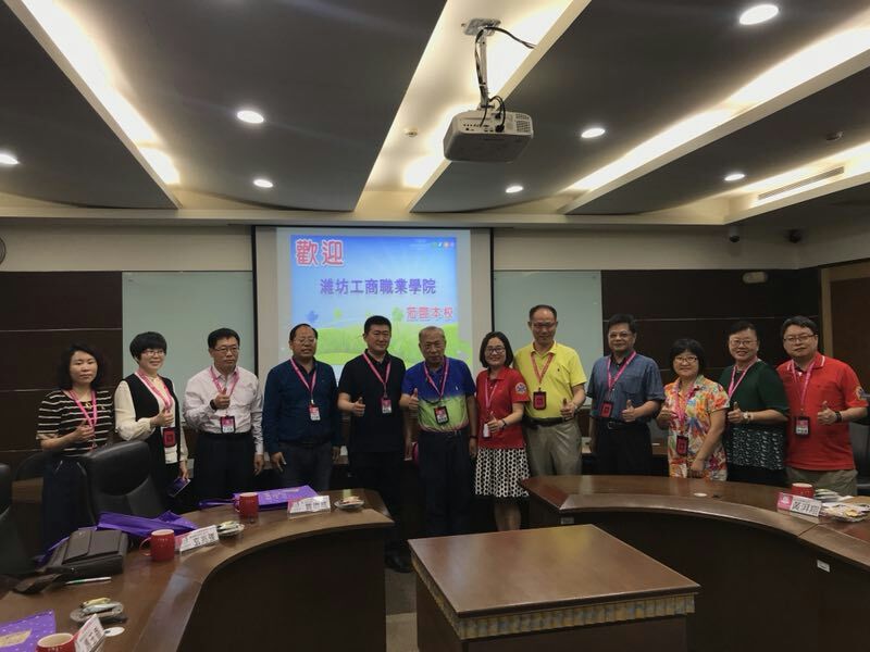 2018年5月15日,潍坊工商职业学院党委书记郑志松、副院长缪文卿率人事处处长贾德威、服纺艺术系主任冯玉香、医养健康学院常务副院长玄兆强赴台湾大仁科技大学进行培训、参访交流,商谈合作事宜。大仁科技大学董事长黄国庆,国际及两岸事务处执行长陈月红,副执行长洪堂耀及有关院系领导参加了坐谈。