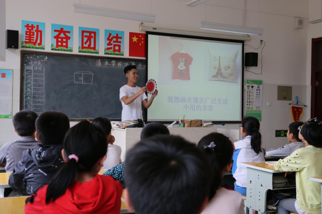 我院的大学生充分发挥自己专业特长,结合小学生的学龄特点,创新教学方法,将课堂知识融入在动手实践和游戏娱乐中,将快乐学习贯穿课堂。音乐课上欢歌笑语,余音袅袅;美术课上专心致志,其乐融融;体育课上兴致高昂,气氛活跃,一片欢乐的海洋!小“老师”们经过半年多的专业培训和支教实践,在讲台上愈发成熟,不仅能够顺利地完成教学任务,还能够很好地掌控课堂,及时地为孩子们解疑答惑。从第一次站上讲台时的羞涩和胆怯,到现在满脸的自信与从容,正在历经学生到老师的蜕变!