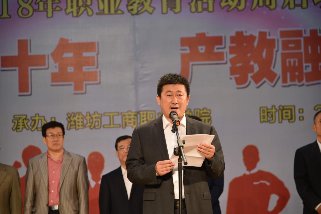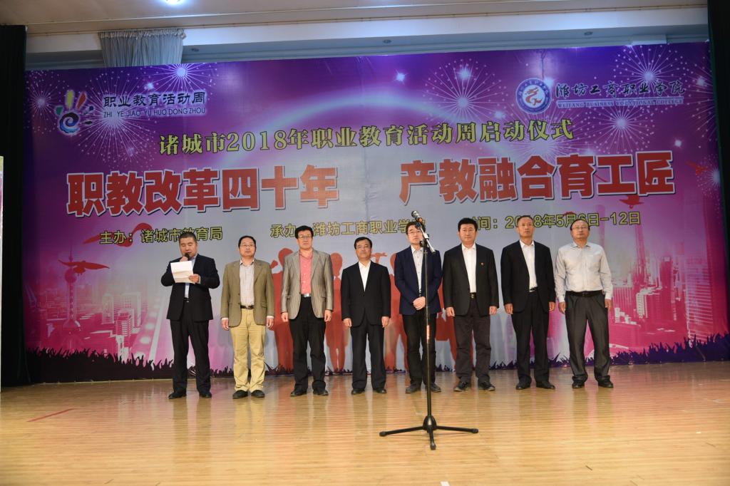 为全面贯彻党的十九大精神,宣传改革开放以来诸城市职业教育取得的丰硕成果,进一步营造全社会关心支持职业教育的良好氛围,按照教育部、山东省教育厅及潍坊市教育局的统一部署,2018年5月7日,诸城市暨潍坊工商职业学院2018年职业教育活动周启动仪式在学院图书信息楼隆重举行。今年职业教育活动周的主题是“职教改革四十年,产教融合育工匠”。