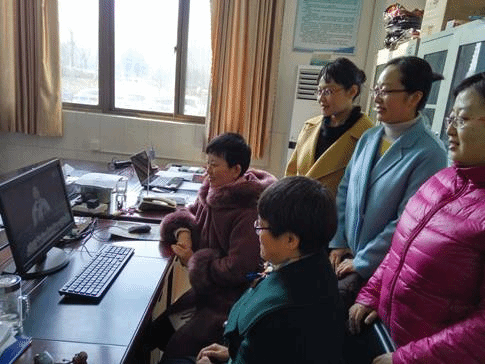 观看讲座的女教师们交流心得