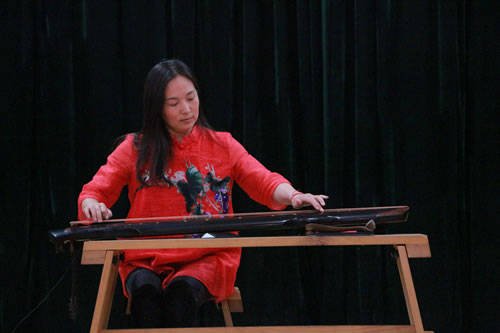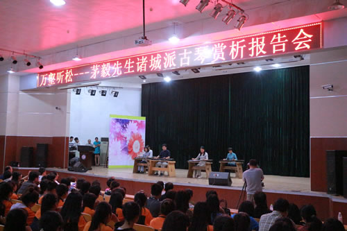 2017年5月16日晚,著名古琴演奏家,中国古琴协会理事,诸城派古琴第六代传人茅毅先生应邀到潍坊工商职业学院第一报告厅举行了“万壑听松---茅毅先诸城派古琴赏析报告会”,茅毅先生在讲解诸城派古琴知识的过程中,其本人和数位诸城派古琴爱好者还现场演奏了《秋江夜泊》、《流水》等数首古琴名曲,为诸城社会各界诸城派古琴爱好者和学院师生带来了一场格调高雅,精彩纷呈的文化盛宴。诸城市文联张崇明主席,潍坊工商职业学院王传旭院长,潍坊工商职业学院郑志松书记等领导莅临报告会并全程观看,共享这场文化盛宴的还有诸城市社会各界古琴爱好者70余人,潍坊工商职业学院表演艺术、学前教育专业全体师生,大学生艺术团、校园广播站、大学生文化讲师团成员等共计700余人。