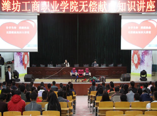 活动开展前夕,11月17日晚自习期间,学院在第一报告厅举行了无偿献血知识讲座及动员活动。潍坊血站杨科长通过翔实的数据,生动的语言、准确的表述,深入浅出地普及了血液知识和采供血的流程以及国家的法律规定,进一步深化了广大青年学生对血液知识的认识,激发了同学们积极参与无偿献血的热情。学生处冯玉香副主任要求同学们要加强对无偿献血重要意义的认识,进一步增强个人的社会责任感,树立“无偿献血、无尚光荣”的意识,动员同学们在保证自己身体健康的情况下,积极参与到无偿献血公益活动中来。
