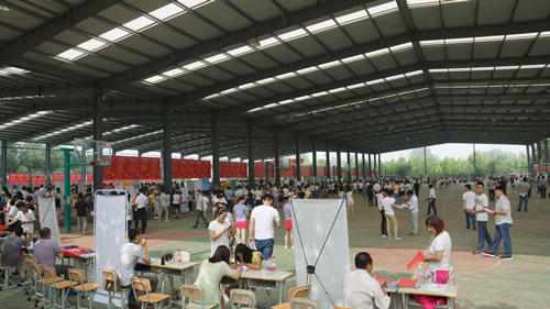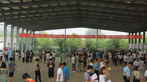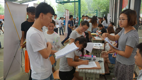 7月2日,学院2016年夏季校园招聘会在风雨操场举行,来自省内外260多家用人单位参加招聘,学院应往届毕业生 1700多人入会求职。院长刘焕仁、副院长郑立峰现场视察指导。