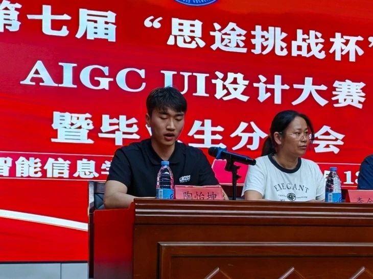 5月13日,第七届"思途杯"AIGC-UI设计大赛开幕式暨毕业生成长论坛正式启动。副校长郑明言、智能信息学院领导班子与中享思途教育集团区域总监王豪杰共同开启活动,200余名师生见证产教协同育人新实践。党支部书记王春晖主持开幕式。