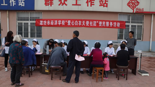 为紧密结合职业院校特色,发挥专业等资源优势,引导学生在志愿服务中践行社会主义核心价值观,增强责任感、使命感,树立成长成才的自信心,同时面向社会展示职业教育成果和学生的职业素养,5月10日,我院中职护理专业的“爱心白衣天使”社团走进诸城市密州街道大王门社区,开展为社区居民义务教授护理知识和免费查体活动。
