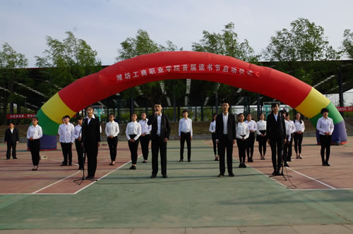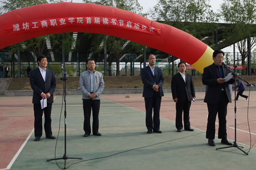 在第20个“世界读书日”来临之际,4月23日下午,潍坊工商职业学院在体育场举办了首届读书节开幕仪式。诸城市教育局图书管理指导服务中心领导、学院有关领导和学生代表参加了活动。副院长张朝辉主持仪式。