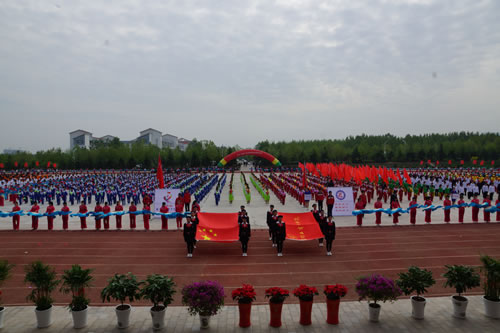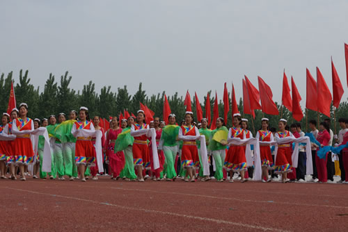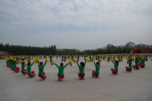 开幕式上,学院大中专学生进行了军体拳、“动感的青春”健美操、“中华魂”武术和“舞动的春天”扇子舞等大型团体操表演,将开幕式推上了高潮。
