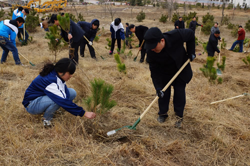 为响应“绿色环保”的号召,宣扬优秀文明传统,植树造林共建绿色校园,在第36个植树节到来之际,3月12日下午,我院全体领导班子成员、教师志愿者及青年学生志愿者300余人参加了植树活动。