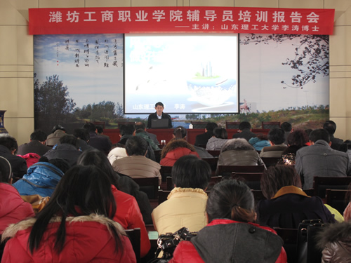 为进一步提升我院辅导员的职业能力和工作水平,增强责任意识和服务意识。2月27日下午,我院特邀2010年全国十佳辅导员、全国高校辅导员年度人物、山东理工大学的李涛博士,在图书信息中心第二报告厅为全体学生工作人员作了题为“用心做好辅导员工作”的精彩报告会。报告会由学生处长陶炳勇主持,副院长郑立峰、各系负责人、全体辅导员及相关学生工作人员出席了报告会。