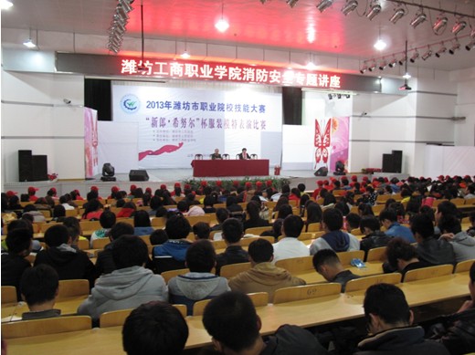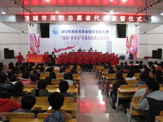 11月8日下午,潍坊工商职业学院消防安全知识讲座暨诸城市消防志愿者代表宣誓仪式在第一报告厅举行。