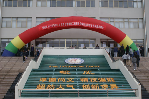 为贯彻落实省、市有关毕业生就业政策,做好2012年毕业生就业工作,满足用人单位对优秀人才的需求,更好地帮助毕业生顺利就业, 11月3日,“诸城市2012年秋季人才招聘洽谈会暨潍坊工商职业学院2013届毕业生校园招聘会”在我院图书信息中心举行。来自省内外的300多家用人单位现场招聘,学院应往届毕业生2300多人到会求职。市人社局、教育局的领导、院长王立波、工会主任唐德良亲临现场视察、指导。