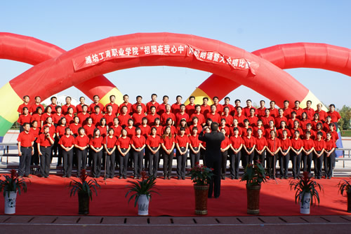 10月19日下午,为迎接党的“十八大”胜利召开,激发广大师生的爱国热情、丰富精神文化生活,营造良好的校园文化氛围,学院在体育场举行了“祖国在我心中”诗歌朗诵暨大合唱比赛。