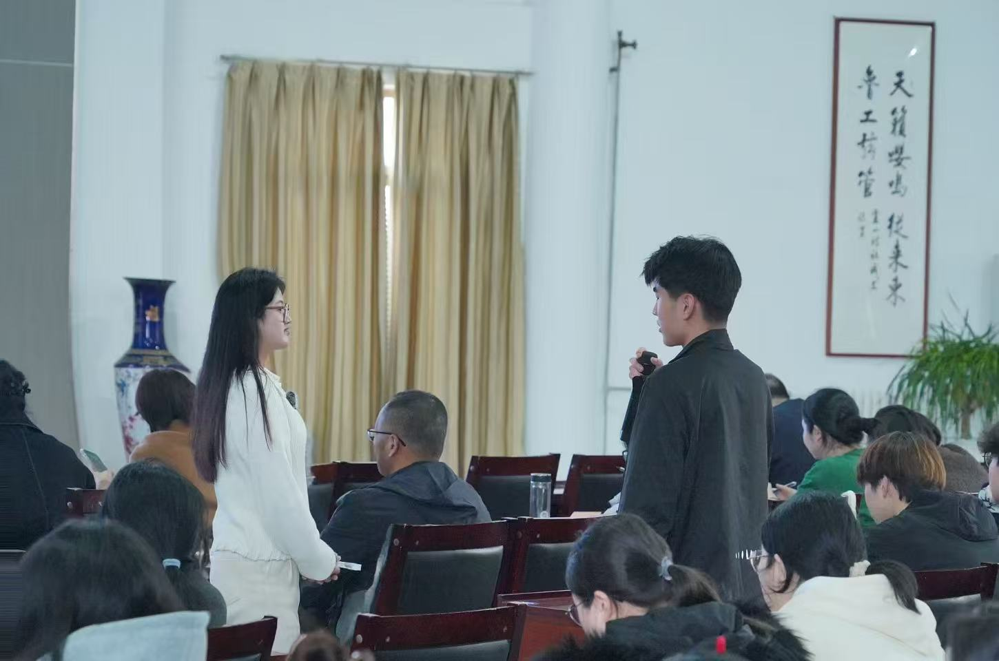 思政大课结束后,马克思主义学院的思政课教师们迅速展开集体研讨,党委书记葛国文对课程进行了全面的总结与专业指导,为今后思政课程的教学改进和创新提供了宝贵的方向。