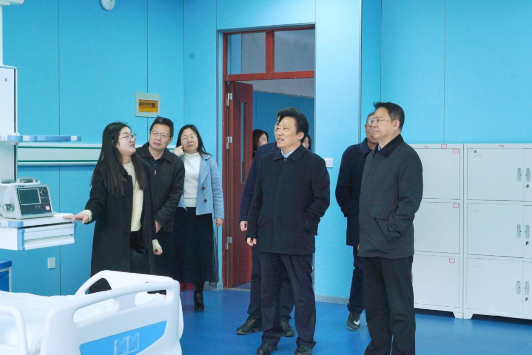 在医养健康实训中心,王爱民主席详细听取了中心建设进展、专业特色及教学成果汇报,对我校在医养健康领域的人才培养模式和创新实践给予高度评价。他指出,学校应继续深化产教融合,强化校企合作,充分发挥实训平台优势,为地方健康产业发展输送更多高素质技能人才。