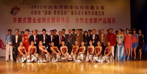 4月17日,2012年山东省职业院校技能大赛中职组“新郎•希努尔杯”服装设计制作技能比赛在我院拉开帷幕。省教育厅党组成员、总督学徐曙光、新郎•希努尔集团总裁王金玲出席开赛式。中国服装协会副秘书长谢青、福建师范大学美术学院艺术设计系副主任谢良教授等全国知名服装专家作了报告。开赛式上,举行了全省师生服装设计作品及“新郎•希努尔”2012—2013秋冬新产品动态展示,学院师生献上了精彩的文艺表演。