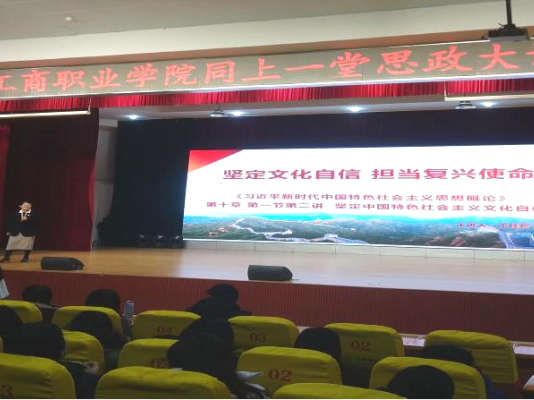 活动中,经贸学院党支部书记谢瑞凤和马克思主义学院院长王桂珍分别以《江山就是人民,人民就是江山》和《坚定文化自信 担当复兴使命》为题进行了授课。谢瑞凤书记从“如何理解”“为什么要这样”“怎样去做”三个方面,对“江山就是人民,人民就是江山”这一主题进行了深入浅出的阐述。王桂珍院长则以文化自信为主线,从“为什么要自信”“自信底气何来”“如何坚定自信”三个方面,为师生们带来了一场精彩的论述。