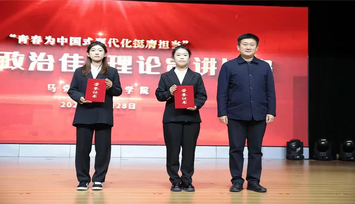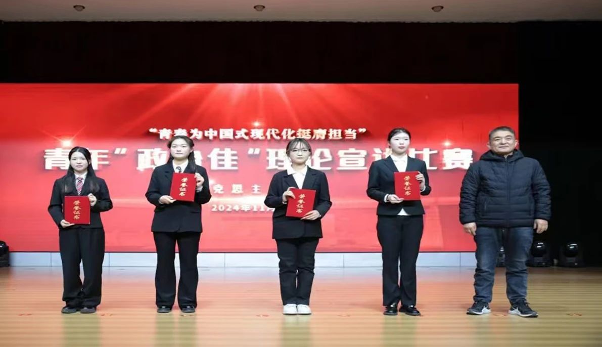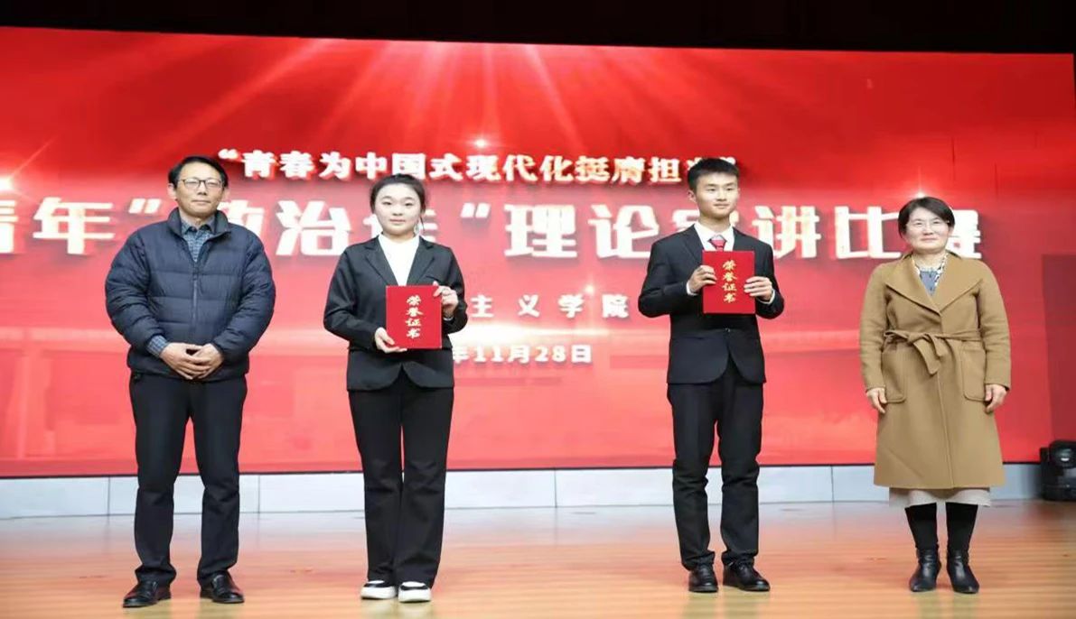 11月28日,我校马克思主义学院组织开展了“青春为中国式现代化挺膺担当”青年“政治佳”理论宣讲比赛。党委常务副书记、执行校长郑志松,党委委员、宣传统战部部长王树忠,督导室主任王炎,马克思主义学院院长王桂珍,思政课教师及学生代表现场参会,全校师生通过线上直播观看比赛。