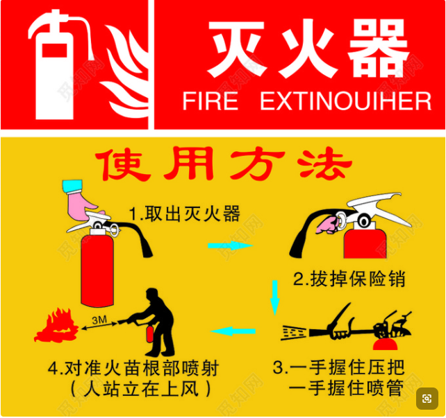 如果发现火灾,不要惊慌。首先要判断火势大小,如果火势较小,可以使用灭火器等进行灭火。在使用灭火器时,要牢记 “一提、二拔、三握、四压” 的操作步骤。