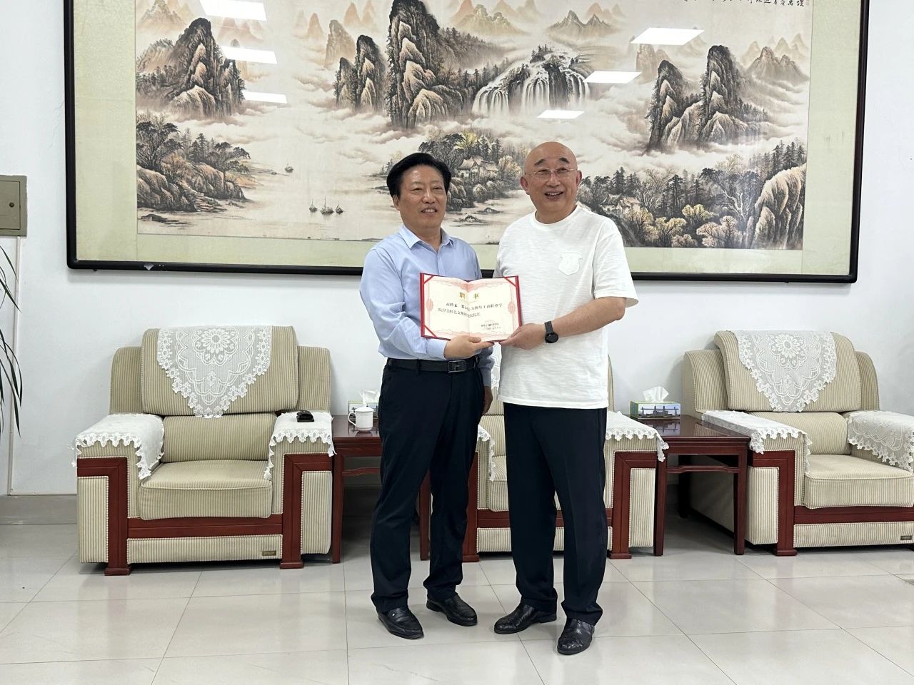 座谈会前,张绍秋校长为王军院长颁发“尽美红色文化研究院院长”聘任证书