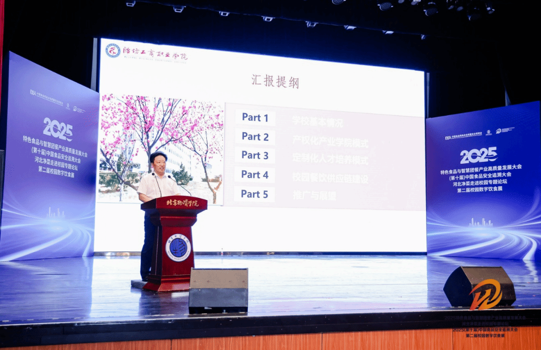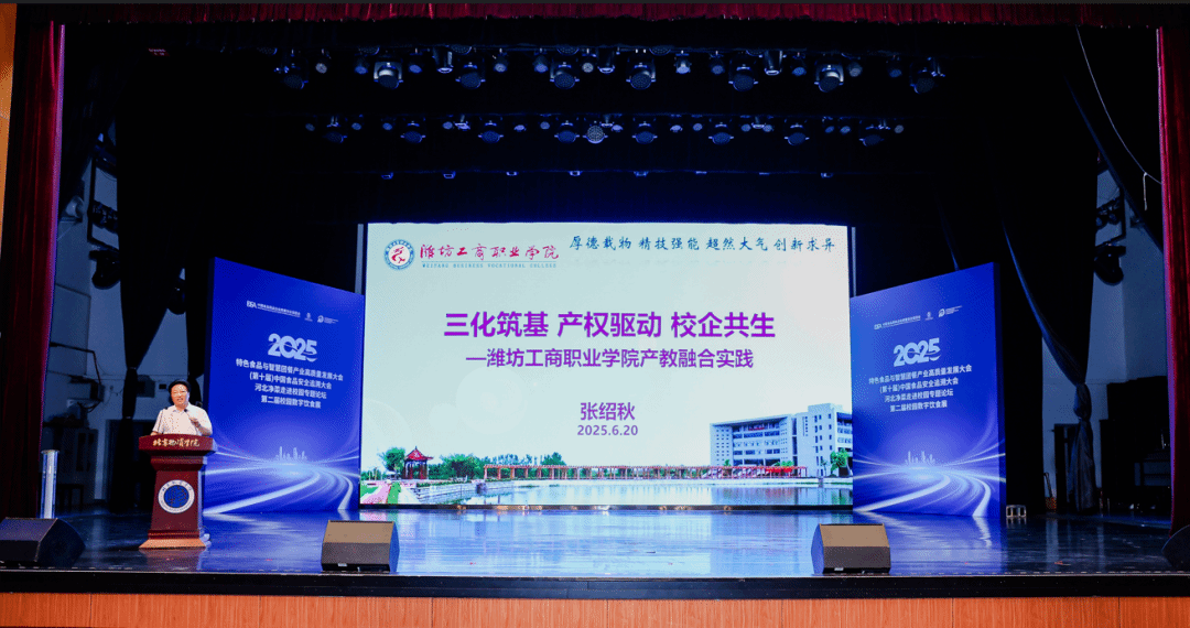 6月20日,2025特色食品与智慧团餐产业高质量发展大会在北京隆重召开,校长张绍秋应邀出席并作主题报告。张校长在报告中系统介绍了我校以“实体化运作、产权化共建、专业化赋能”为核心,创新构建“产权驱动、校企共生”产教融合模式的显著成果与实践经验,引发了与会专家和行业同仁的广泛关注与热议。