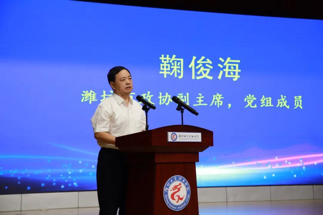潍坊市政协副主席、党组成员鞠俊海,诸城市委书记张建伟,潍坊市教育局党组成员、山东(潍坊)海洋科技大学园管理办公室党组书记、主任张英杰,诸城市政协主席王爱民,诸城市委常委、办公室主任、统战部部长、市政协党组副书记孙秀卿,华为全球教育行业解决方案总经理李声阳,深圳讯方技术股份有限公司董事、总工程师丁振强,俄罗斯自然科学院院士、学校特聘教授陈清奎,校长张绍秋,党委书记葛国文,党委常务副书记、执行校长郑志松等领导及企业、师生代表700余人参加活动。