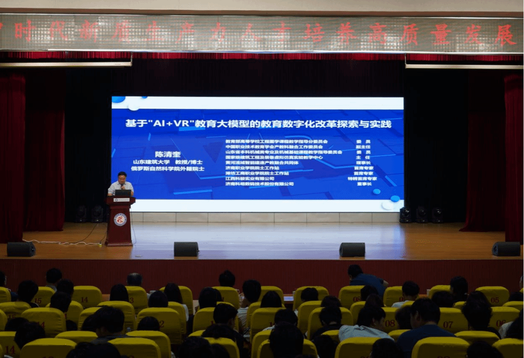 华为专家范敏杰以《构筑数字化转型人才基石》为题,分享了华为在全球ICT人才培养的成熟模式;丁振强总工程师深入剖析《基于产业链生态的数智人才培养》,强调生态协同对人才链的关键价值;俄罗斯自然科学院院士、我校特聘教授陈清奎带来《“AI+VR”教育大模型驱动教育数字化改革》的实践案例,为技术赋能教育变革提供新思路。三位专家的报告紧扣“新质生产力”内核,为培养适应数字经济的高技能人才提供了创新方案。