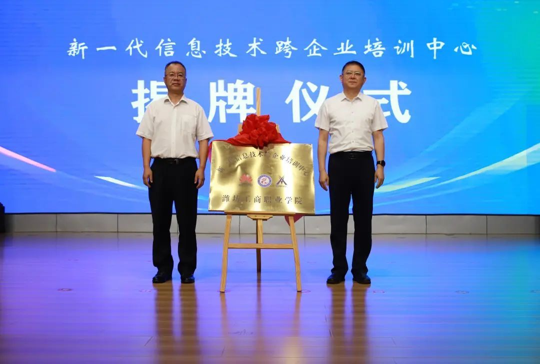 揭牌仪式上,三项重大合作成果正式落地。鞠俊海副主席与李声阳总经理共同为“华为ICT学院”揭牌;张建伟书记与丁振强总工程师为“新一代信息技术产业学院”揭牌;张英杰书记与王爱民主席为“潍坊工商职业学院新一代信息技术跨企业培训中心”揭牌。三大实体平台的同步落地,不仅为校企合作提供了重要载体,更构建起集教学、实训、研发、服务于一体的综合育人体系,打通人才培养与产业应用的“最后一公里”。