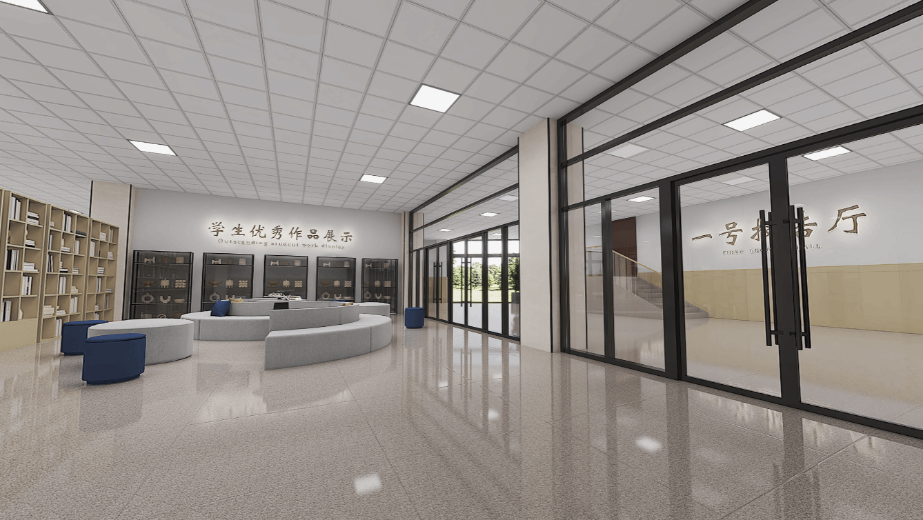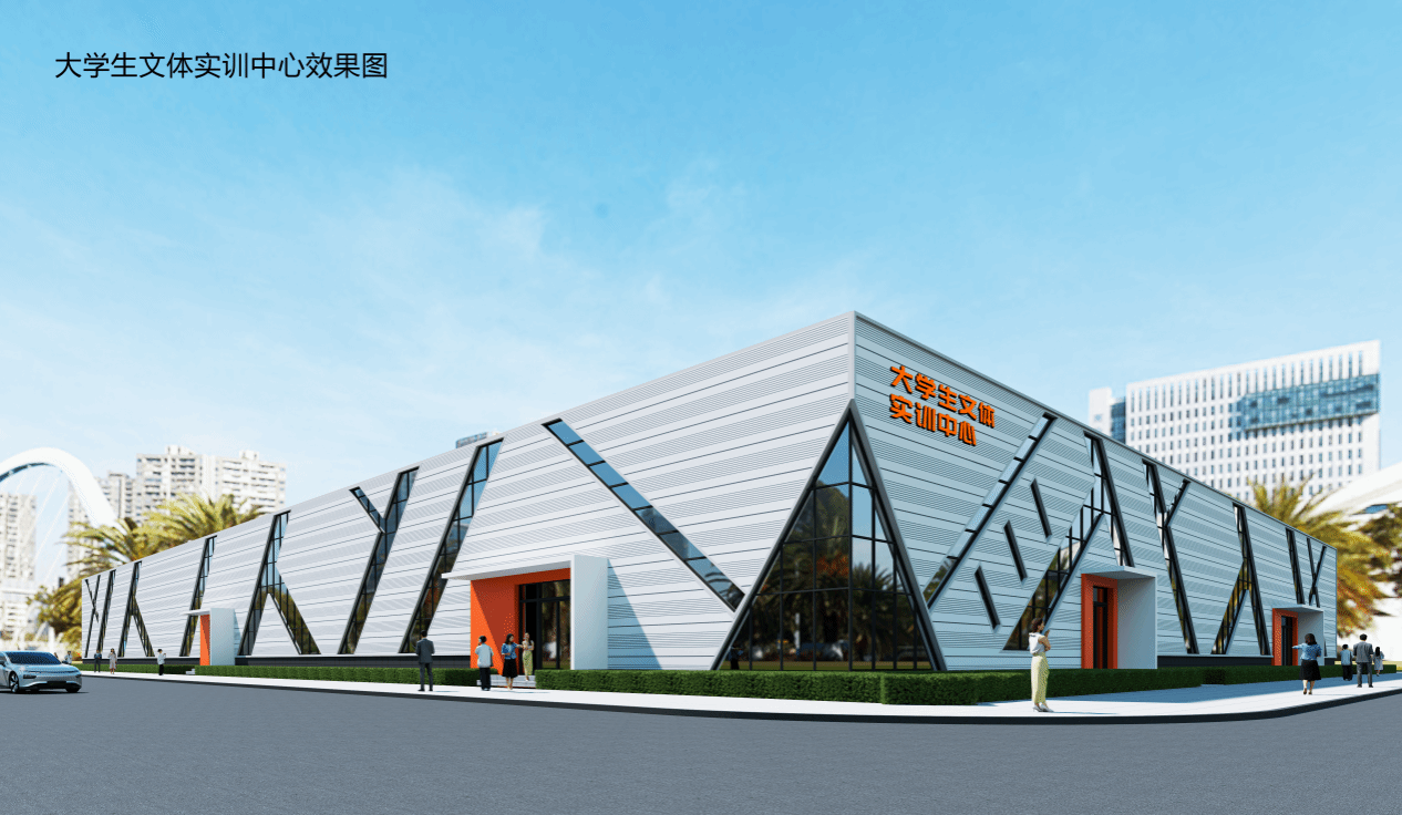 原风雨操场华丽转身为现代化大学生文体实训中心!通透玻璃幕墙、几何线条设计,划分标准运动场地(篮球、羽毛球等)和专业文艺排练厅,打造青春活力新地标!