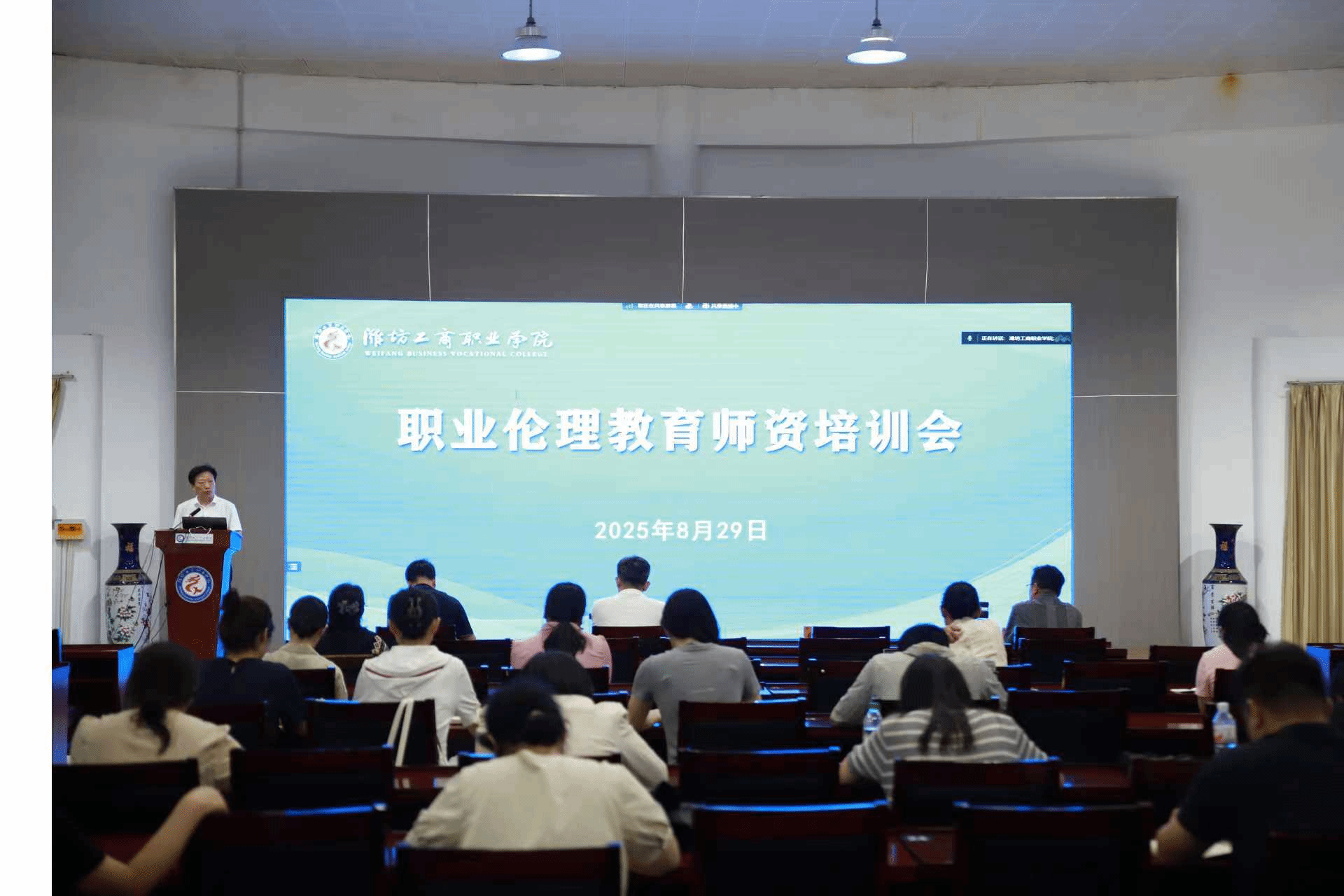 8月29日,职业伦理教育联合教研室在潍坊工商职业学院设立主会场,并于贵州六盘水、浙江台州、广东深圳、山东德州、潍坊等地设立分会场,面向15所院校的400余名教师开展了全国首轮职业伦理教育师资培训。职业伦理教育联合教研室主任、教育部人文社科重点研究基地伦理学与道德建设研究中心主任、中国人民大学哲学院副院长张霄,职业伦理教育联合教研室顾问、中国矿业大学乡村振兴研究中心副主任、教育部职成教司职业院校德育工作处原处长邬跃分别作《职业伦理教育的重要性》《从伦理与道德互为表里审视职业院校的职业道德教育》学术报告,职业伦理教育联合教研室常务副主任、我校副校长郭素森作职业伦理教育试点内容解析和教学课件解读,职业伦理教育联合教研室顾问、山东省教育厅职业教育处一级主任科员李胜红致辞。我校校长张绍秋主持培训会。