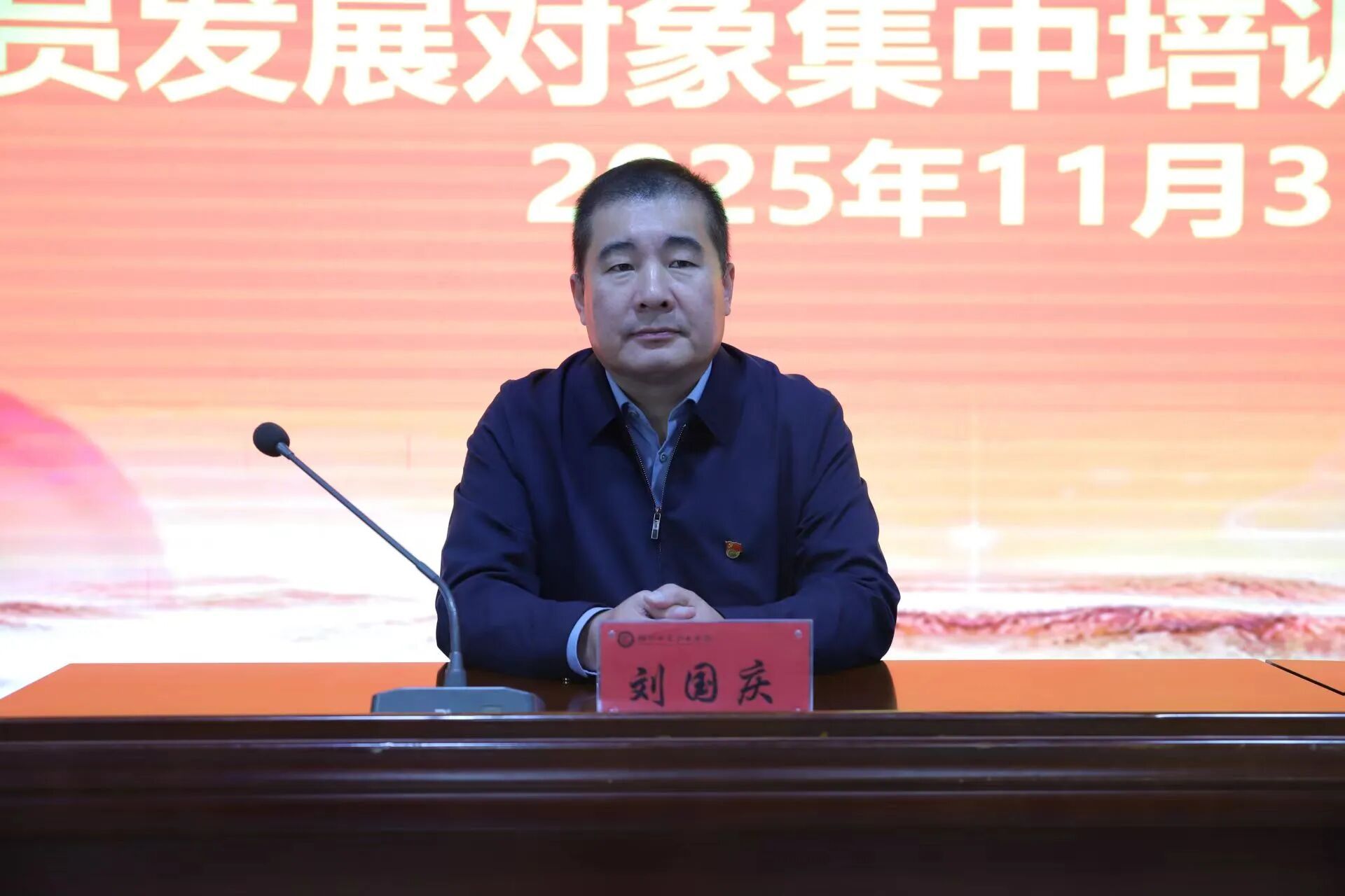 开班仪式上,刘国庆副书记代表学校党委对全体学员表示欢迎,深刻阐明了新时代党员发展对象培训的重要意义与核心目标,并对参训学员提出明确要求。他强调,一要提高思想认识,充分把握培训的重要性,增强学习的主动性与自觉性;二要聚焦核心问题,深入思考“为何入党”“如何做合格党员”,真正实现从“行动入党”到“思想入党”的根本转变;三要严守培训纪律,认真听课、做好笔记,确保学有所获、学以致用。同时,寄语全体学员将培训所学转化为实际行动,以过硬表现向党组织靠拢,争取早日成为合格共产党员。