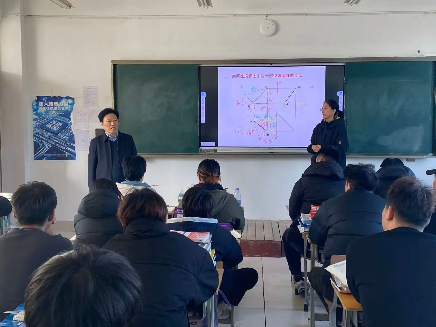 学校领导班子率先垂范,走进教学一线。11月18日至19日,校长张绍秋,党委书记葛国文,党委常务副书记、执行校长郑志松等领导随机推门听课,听取了农牧与建筑工程学院、经贸学院、机电与汽车工程学院、智能信息学院、幼教艺术学院及医养健康学院等多位教师的课程。校领导认真观摩教师授课技巧、学生听课状态及教学设施运行情况。