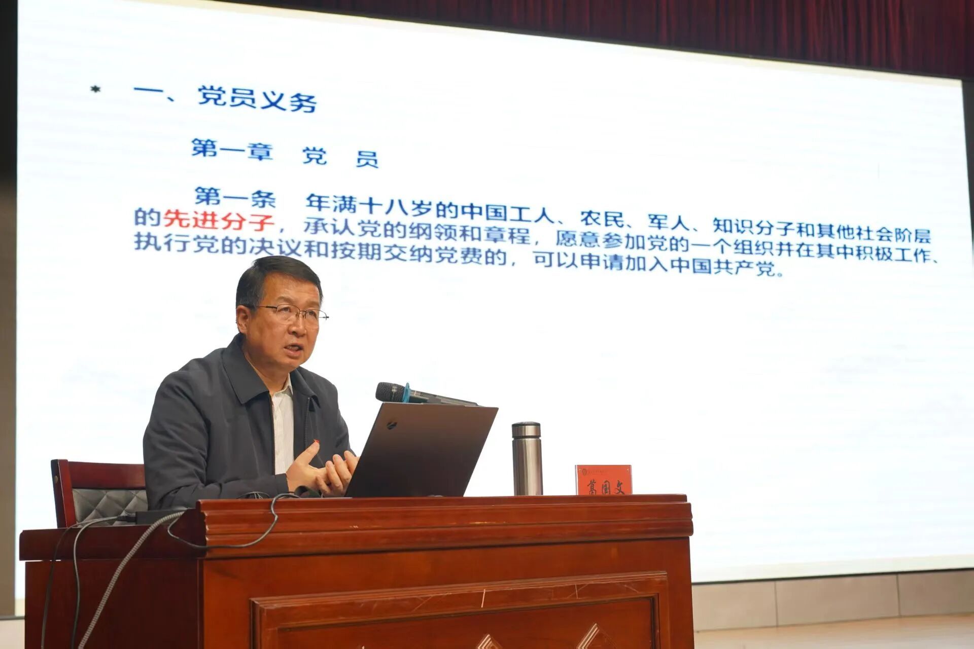 本次培训紧扣党的二十届四中全会精神与中国式现代化的使命任务,构建了“专题授课+自主研学+集中研讨+实践体验”四位一体的学习模式。党委书记葛国文、省派党建工作指导员任锋等10名党建专家及骨干教师进行授课,内容涵盖党章解读、理想信念、纪律规矩、党员权利义务等多个核心板块。授课结合案例分析与互动交流,引导学员从“被动接收”转向“主动思考”,在学思践悟中凝聚共识、筑牢忠诚。