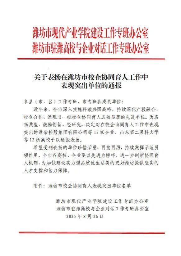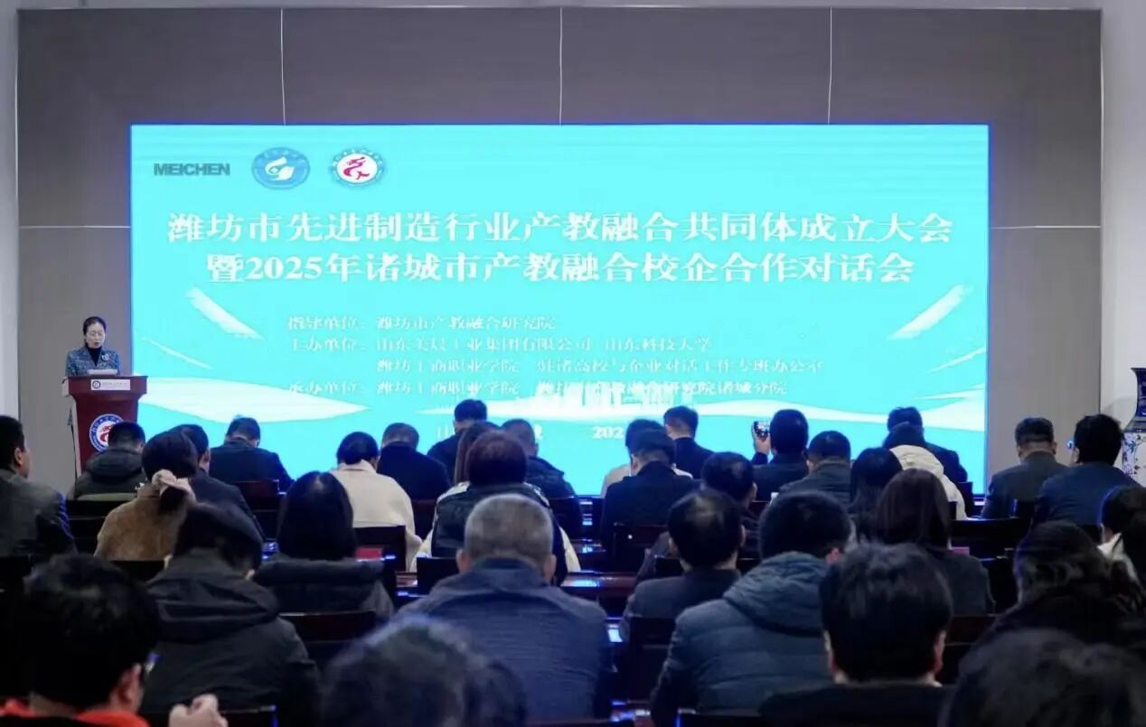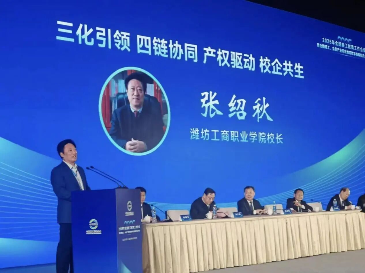 11月28日,潍坊市先进制造行业产教融合共同体成立大会暨2025年诸城市产教融合校企合作对话会在潍坊工商职业学院举行,校长张绍秋当选为首届共同体理事长。