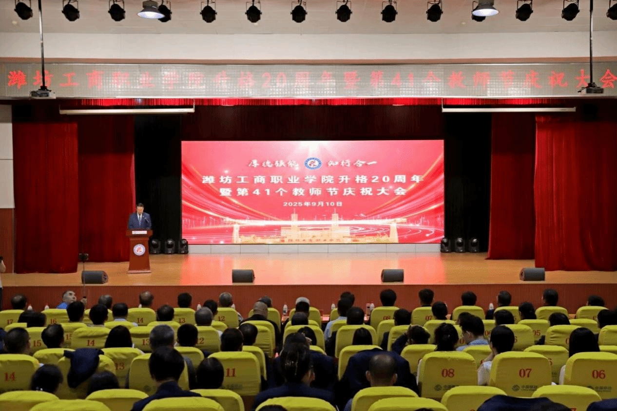 9月10日,潍坊工商职业学院隆重举行“升格20周年暨第41个教师节庆祝大会”,学校党政领导、功勋教师代表、优秀校友及师生700余人齐聚,共忆二十年办学历程、展望职教发展蓝图。自2005年升格以来,学校在办学规模、条件、内涵建设等方面实现历史性跨越,在校生规模突破2万人,建成多个高端产业学院与智慧校园项目,科研及社会服务能力显著提升。学校将坚守立德树人根本任务,深化产教融合、推进数字化转型与国际化交流,致力建设省内一流、国内知名的特色高水平职业院校。