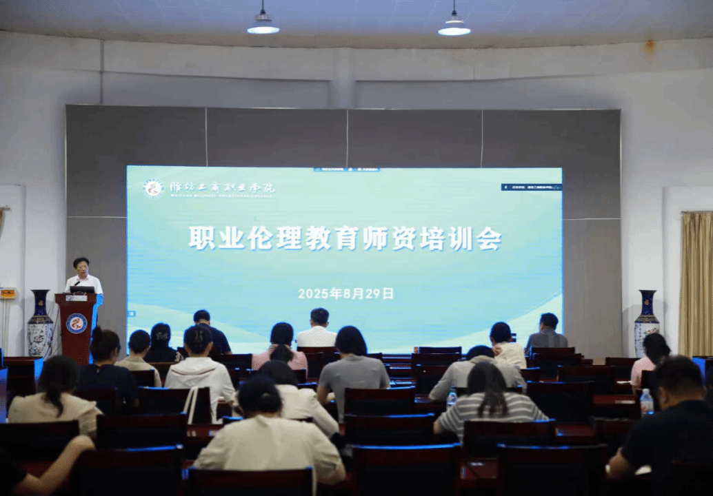 8月29日,全国首轮职业伦理教育师资培训会在潍坊工商职业学院举行。职业伦理教育联合教研室在我校设立主会场,并于贵州六盘水、浙江台州、广东深圳、山东德州、潍坊等地设立分会场,面向15所院校的400余名教师开展了全国首轮职业伦理教育师资培训。