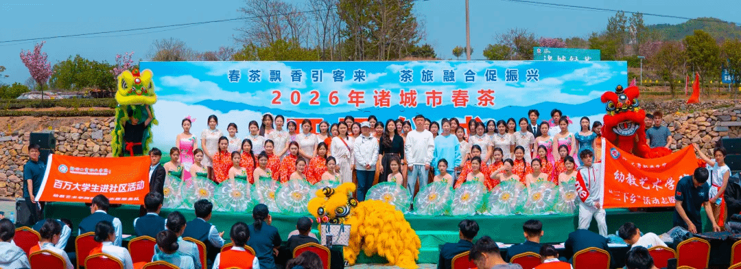 同日,以“春茶飘香引客来 茶旅融合促振兴”为主题的诸城市2026年春茶开园仪式在桃林镇文化广场盛大举行。根据全市统一部署,我校作为协办单位,由幼教艺术学院师生组成文艺团队,紧扣茶主题精心编排节目,用艺术语言诠释诸城茶文化的深厚底蕴与青春活力。