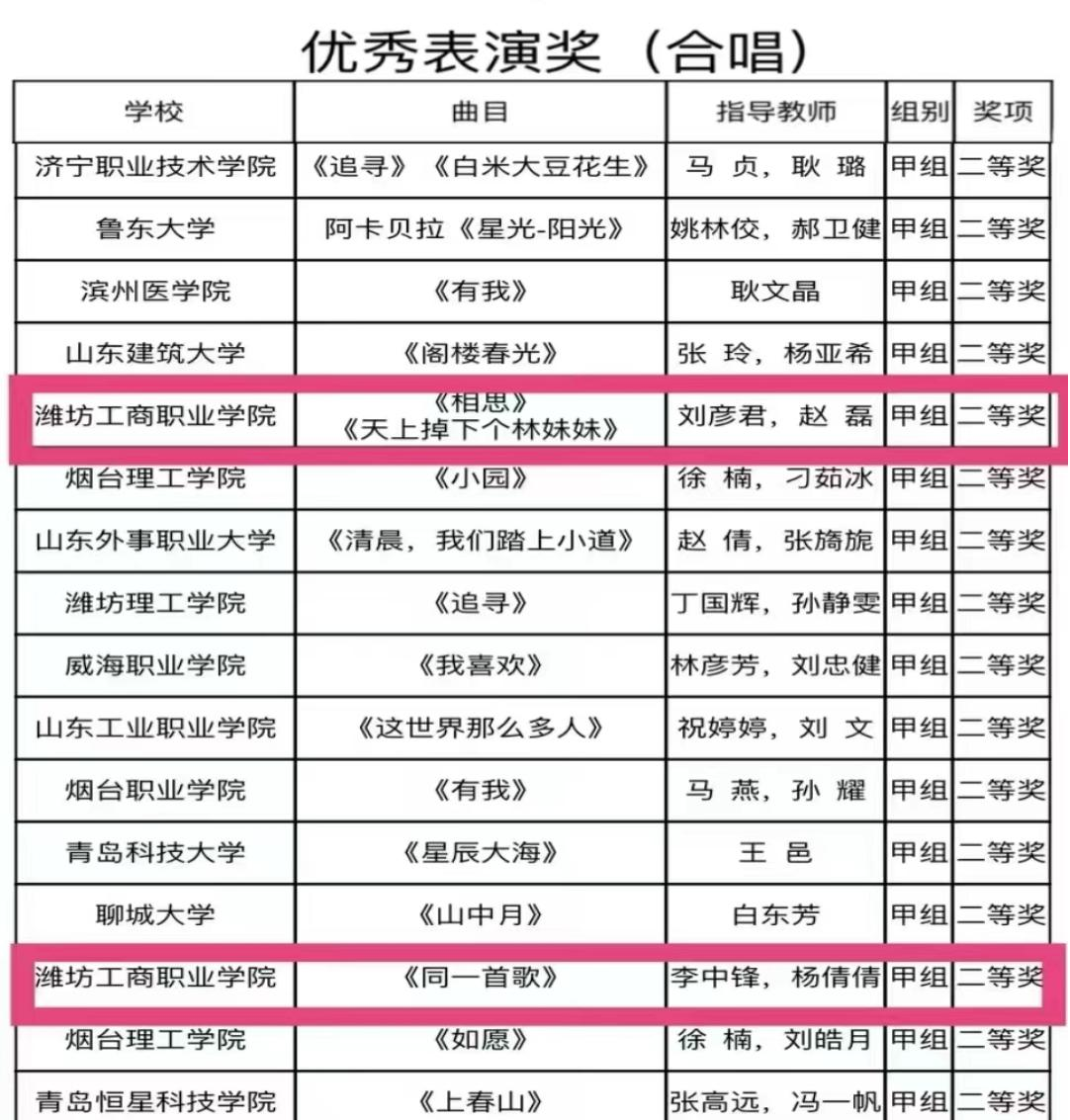 近日,2024年山东省大学生校园艺术节合唱戏剧专项展示活动获奖名单揭晓,我校学子在激烈竞争中脱颖而出,荣获多项荣誉。