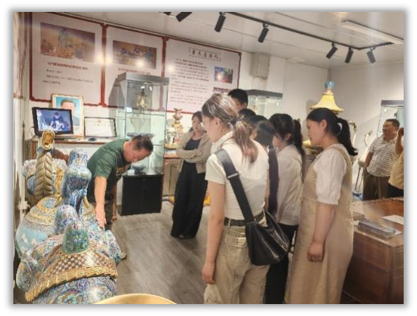 7月3日,师生们在北京珐琅厂受到了董艳娜总经理的热情接待,并在中国景泰蓝艺术博物馆深入了解了景泰蓝的发展历史和工艺变化。师生们还观摩了景泰蓝的制作过程,深刻感受到了景泰蓝设计大师和匠人们对传统文化的坚守和创新。
