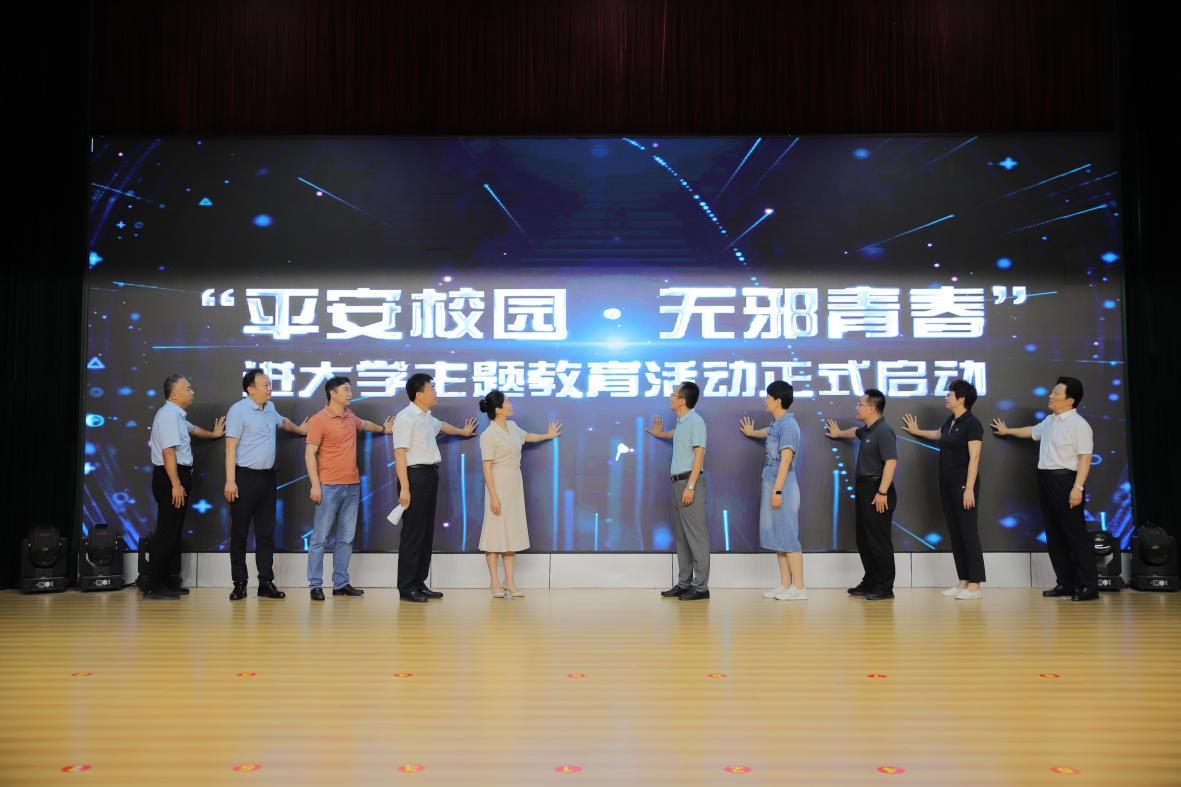 随后,与会领导上台,共同点亮大屏幕,正式启动“平安校园·无邪青春”主题教育活动。